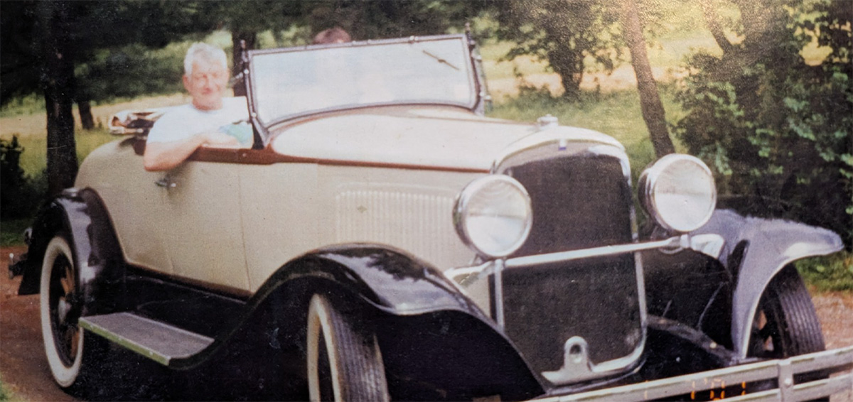 Pictured here Wendell Noble’s 1929 Plymouth Rumble Seat Roadster as it looked when he bought it (above) and as it looks now after restoration (below). Wendell is still waiting for a ride in the rumble seat.