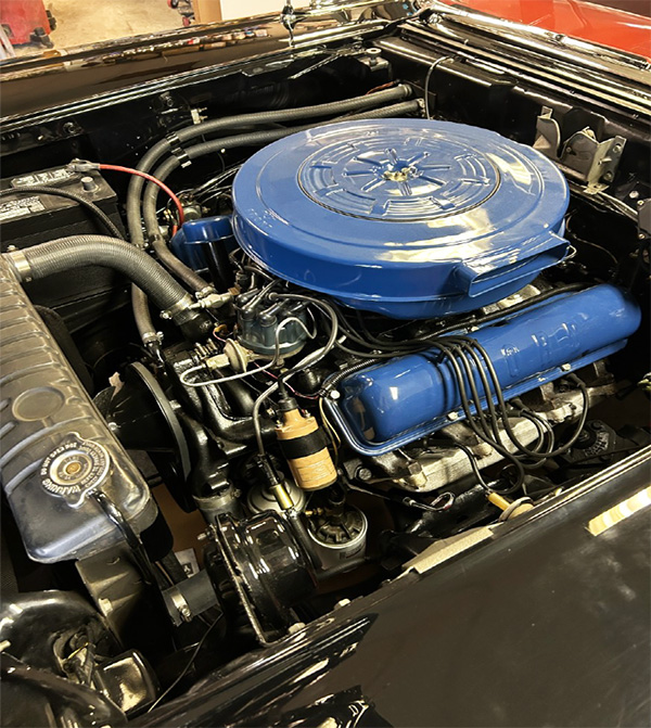 For making patterns for metal in need of replacement, he used the cardboard from cereal boxes. The 352 cubic inch V8 300 HP engine was completely overhauled. John did all the welding and prep work. He was lucky to own a commercial sandblasting unit. From the frame up, John did the painting with some help from his brother, Chuck.
